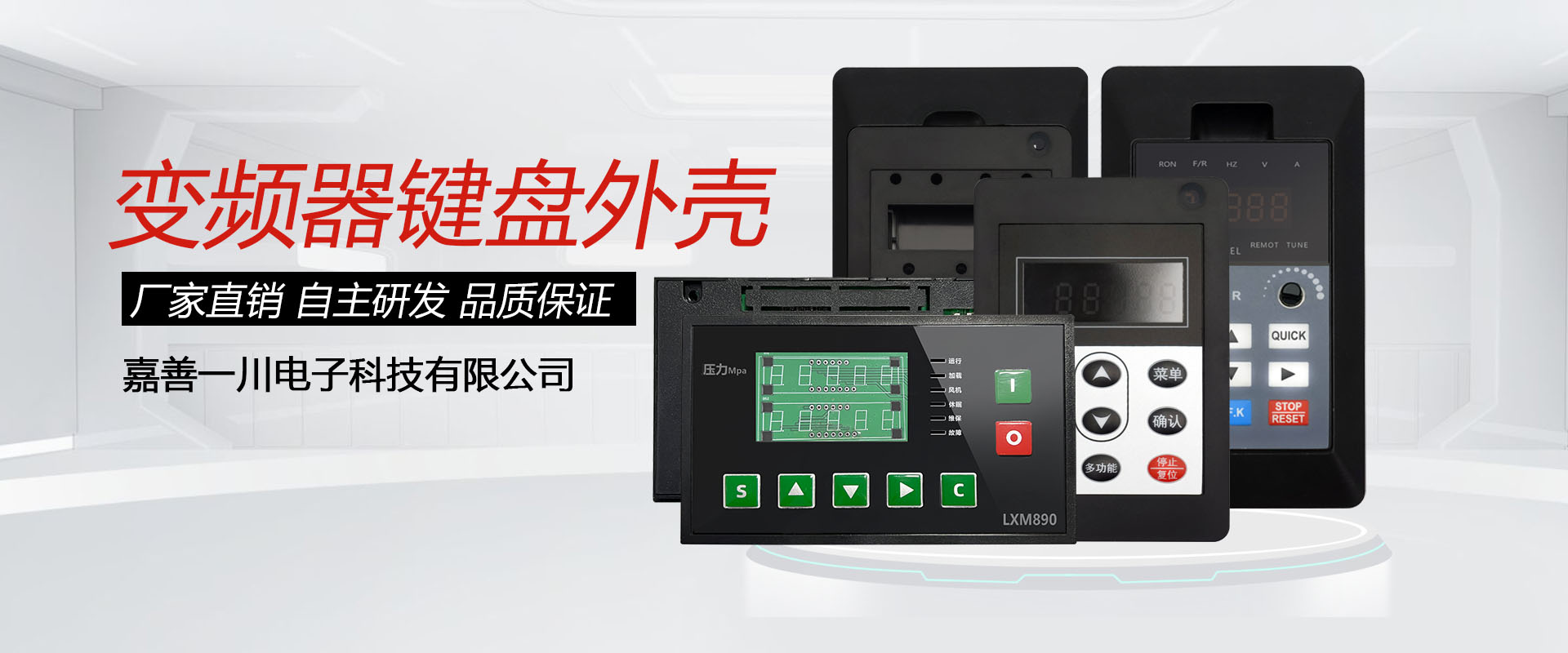 嘉善一川电子科技有限公司长期开发-生产加工各系列国产、进口变频器外壳、软起动外壳、伺服外壳、综合微机保护器外壳、迷你型外壳、电动汽车驱动器外壳、电梯一体机外壳、电源外壳、PLC、文本显示外壳、仪器仪表壳体、电容补偿器壳体、控制器外壳、调速器、继电器外壳、电子电器塑料外壳、端子、配套加工散热器/铝底座和合伙开发新款塑料外壳模具等。
